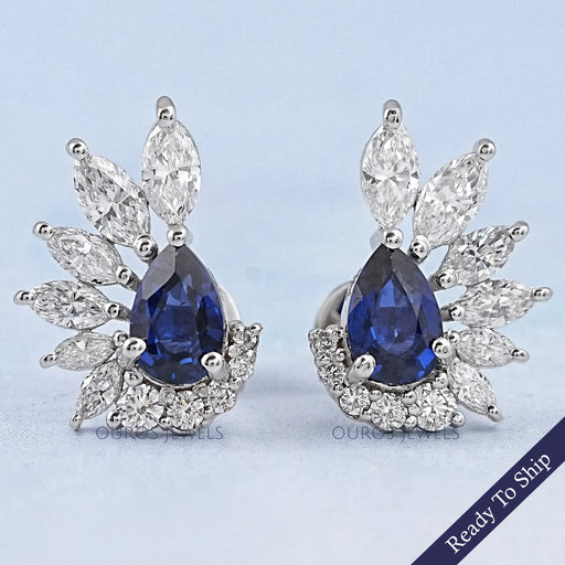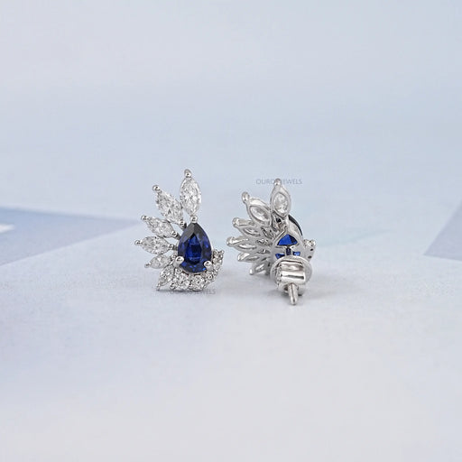 Sapphire Pear And Marquise Diamond Stud Earrings